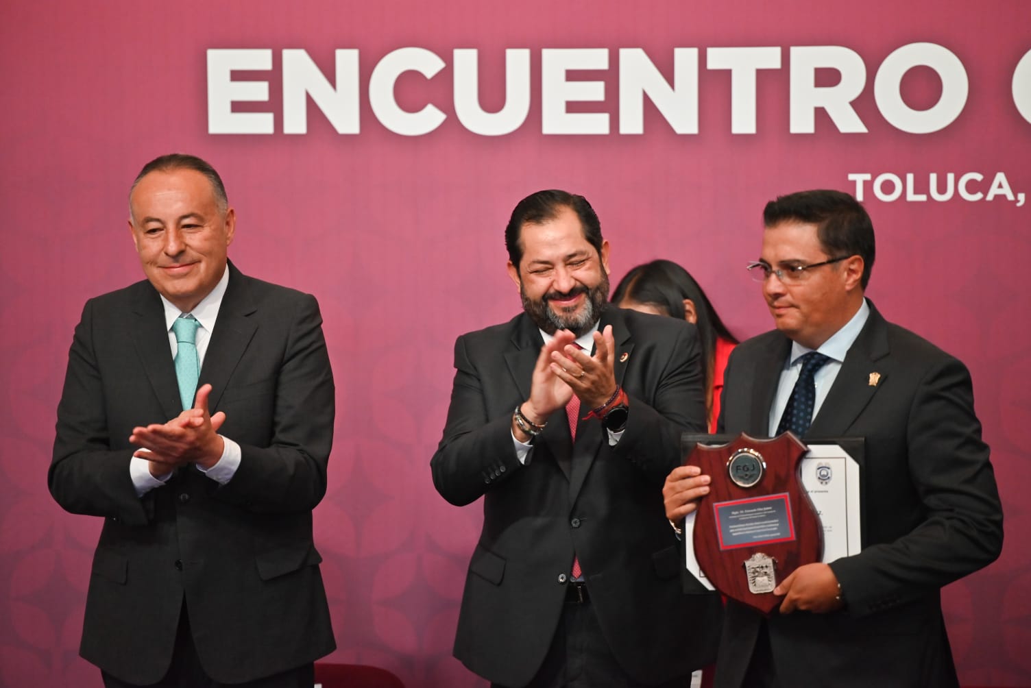 Díaz Juárez fue reconocido igualmente por José Luis Cervantes Martínez, titular de la Fiscalía General de Justicia del Estado de México, por su liderazgo y trabajo colaborativo en materia de procuración de justicia, y por Cristóbal Castañeda Camarillo, secretario de Seguridad, por su destacada labor en la coordinación y suma de esfuerzos en beneficio de la ciudadanía.