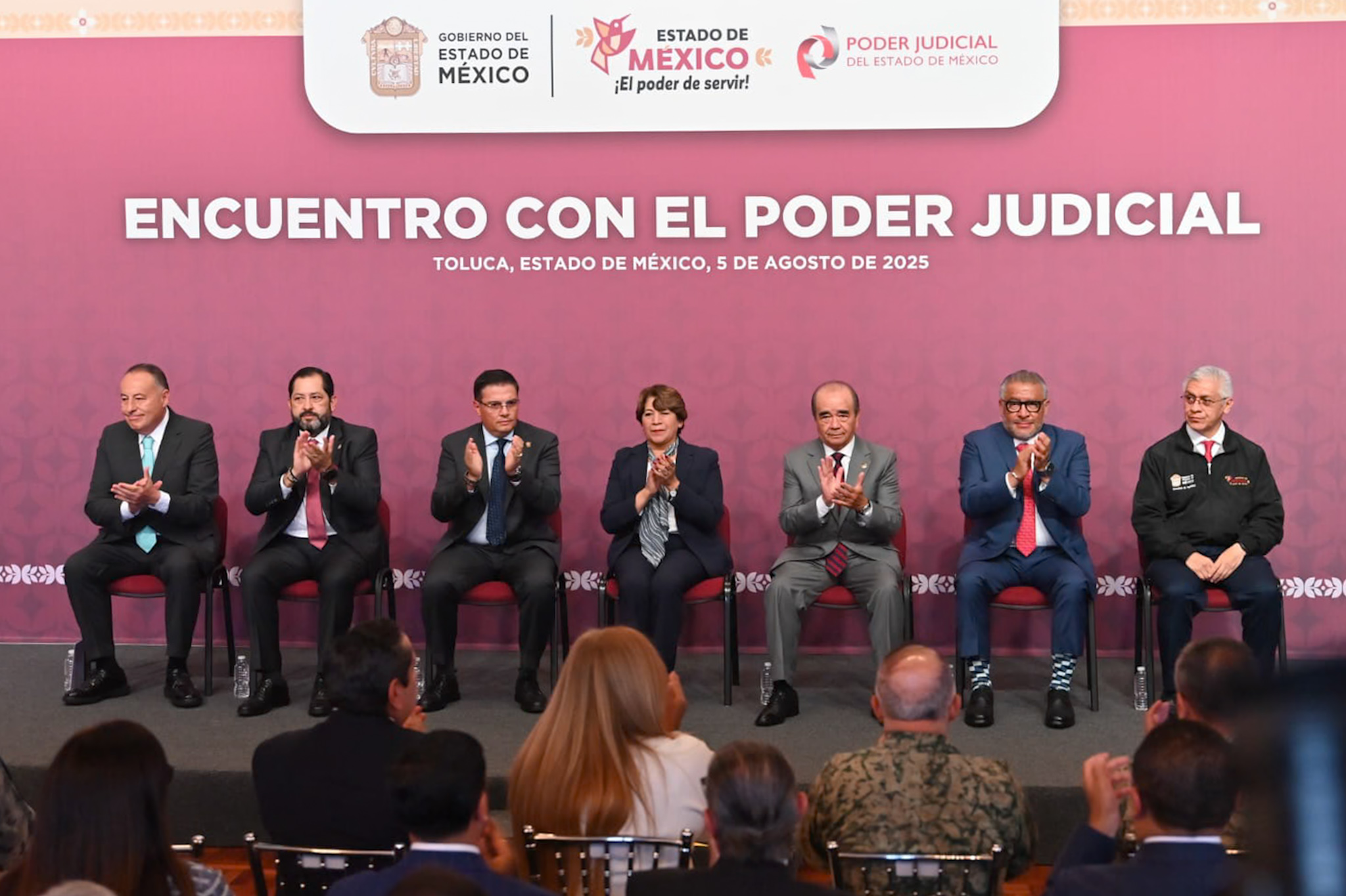 Al evento asistieron Horacio Duarte Olivares, secretario General de Gobierno; personas magistradas y juzgadoras del Poder Judicial; Héctor Macedo García, presidente electo del Tribunal Superior de Justicia, y personas juzgadoras electas para integrarse a este poder; integrantes de la Mesa de Coordinación para la Construcción de la Paz en el Estado de México, así como personas servidoras públicas de los tres órdenes de gobierno.