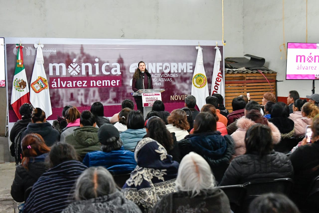 En el Estado de México y en Toluca es tiempo de las mujeres, sostuvo la diputada Mónica Angélica Álvarez Nemer (Morena) al rendir el tercero de sus informes con motivo de su 2º año legislativo, en el que destacó las iniciativas y proyectos que presentó para impulsar el desarrollo de la ciudad, fomentar la igualdad entre hombres y mujeres, y promover el bienestar de la sociedad.