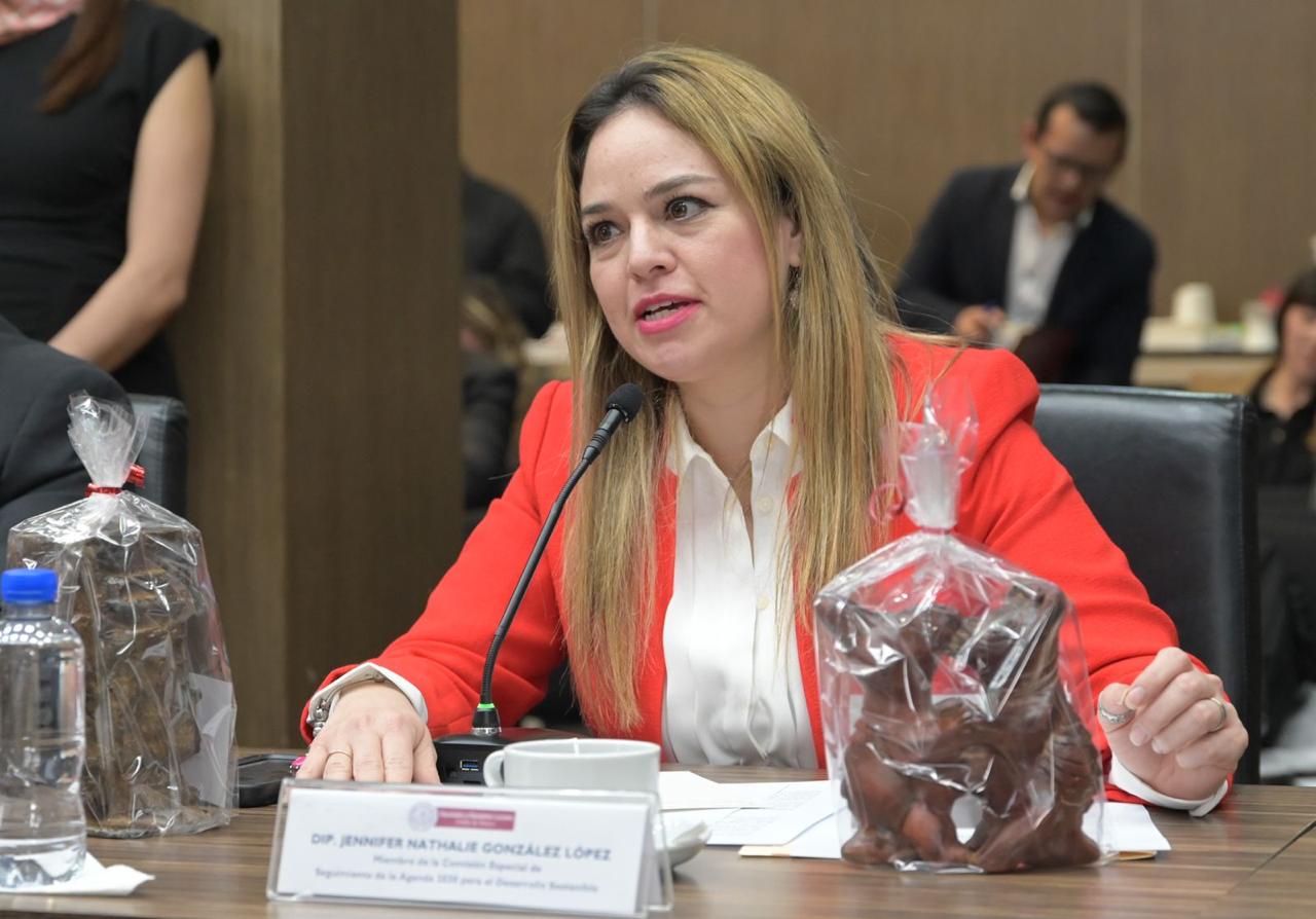 Ante Carlos Jesús Maza Lara, Alhely Rubio Arronis y Mónica Chávez Durán, titulares de las secretarías de Desarrollo Urbano e Infraestructura, Medio Ambiente y Desarrollo Sostenible, y de las Mujeres, respectivamente, la parlamentaria Jennifer Nathalie González López (morena) se pronunció por trabajar para combatir los desafíos mundiales como la pobreza, la corrupción, el hambre, la desigualdad y el cambio climático, por este motivo exhortó a trabajar en unidad y construir una estrategia con indicadores y líneas de acción específicas para dar seguimiento a los ODS.