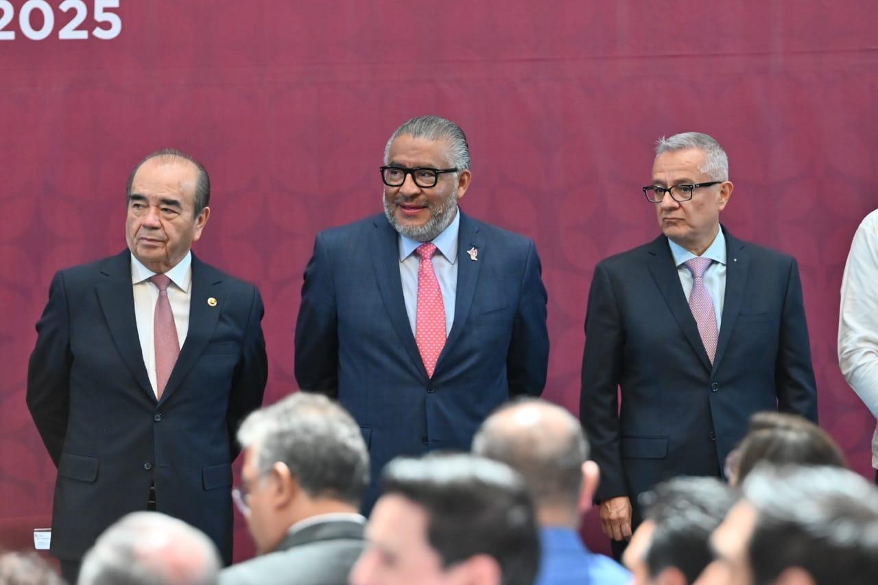 Los diputados José Francisco Vázquez Rodríguez y Maurilio Hernández González, presidentes de la Junta de Coordinación Política y de la Directiva de la LXII Legislatura mexiquense, respectivamente, acudieron al evento ‘Basificación de médicas y médicos especialistas’ del Instituto de Seguridad Social del Estado de México y Municipios, encabezado por la gobernadora Delfina Gómez Álvarez.