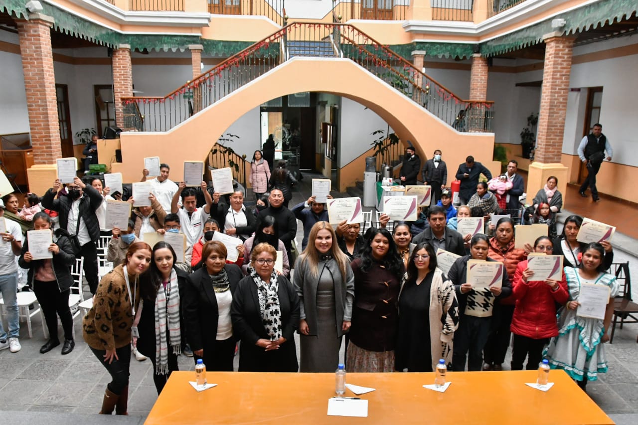 Ante las personas que recibieron sus certificados y reconocimientos, provenientes de Almoloya de Juárez, Temoaya y Otzolotepec, que integran el 45 distrito, la diputada agradeció al personal docente, toda vez que la enseñanza es la verdadera herencia que se puede dejar a las próximas generaciones.