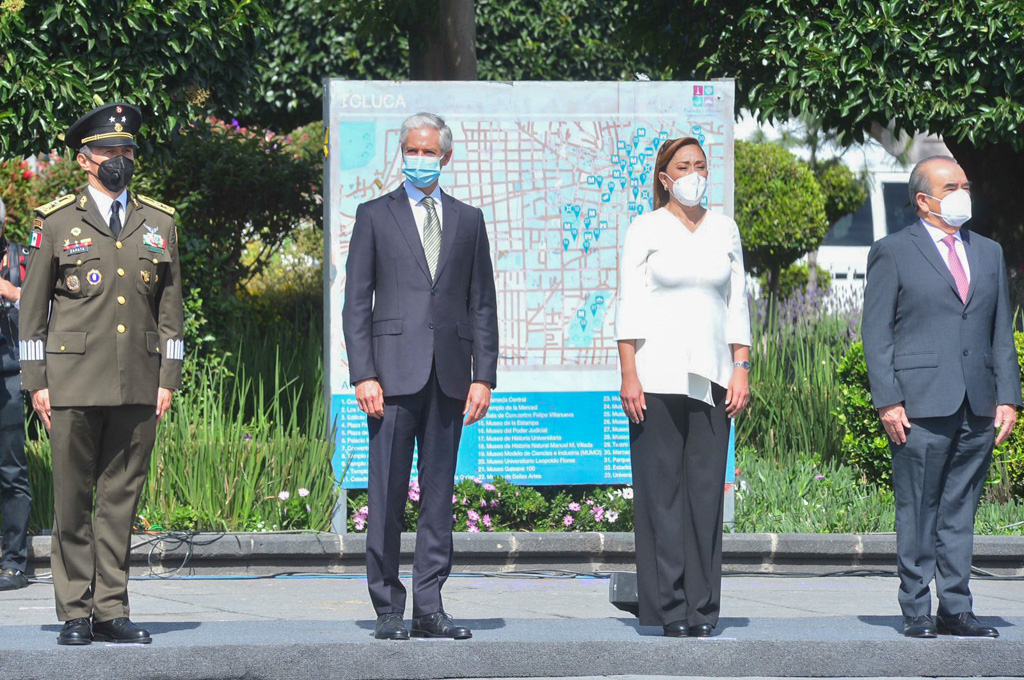 El diputado Maurilio Hernández González, presidente de la Junta de Coordinación Política, y la diputada Ingrid Schemelensky Castro, presidenta de la Directiva de la LXI Legislatura del Estado de México, participaron con el gobernador Alfredo del Mazo Maza y el presidente del Tribunal Superior de Justicia, Ricardo Sodi Cuellar, en los actos conmemorativos del 211 Aniversario del Inicio de la Independencia de México, que, por segundo año consecutivo, se realizaron con medidas sanitarias para evitar la propagación del covid-19.