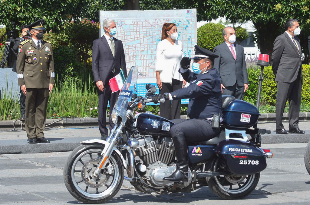 Las y los representantes de los poderes públicos estatales realizaron una guardia solemne de honor en el monumento a Miguel Hidalgo y Costilla, ubicado en la Escuela Secundaria Oficial No. 1, participaron en los honores a la bandera en la Plaza de los Mártires de la capital mexiquense y presenciaron un desfile a cargo de personal de diversas áreas de la Secretaría de Seguridad.