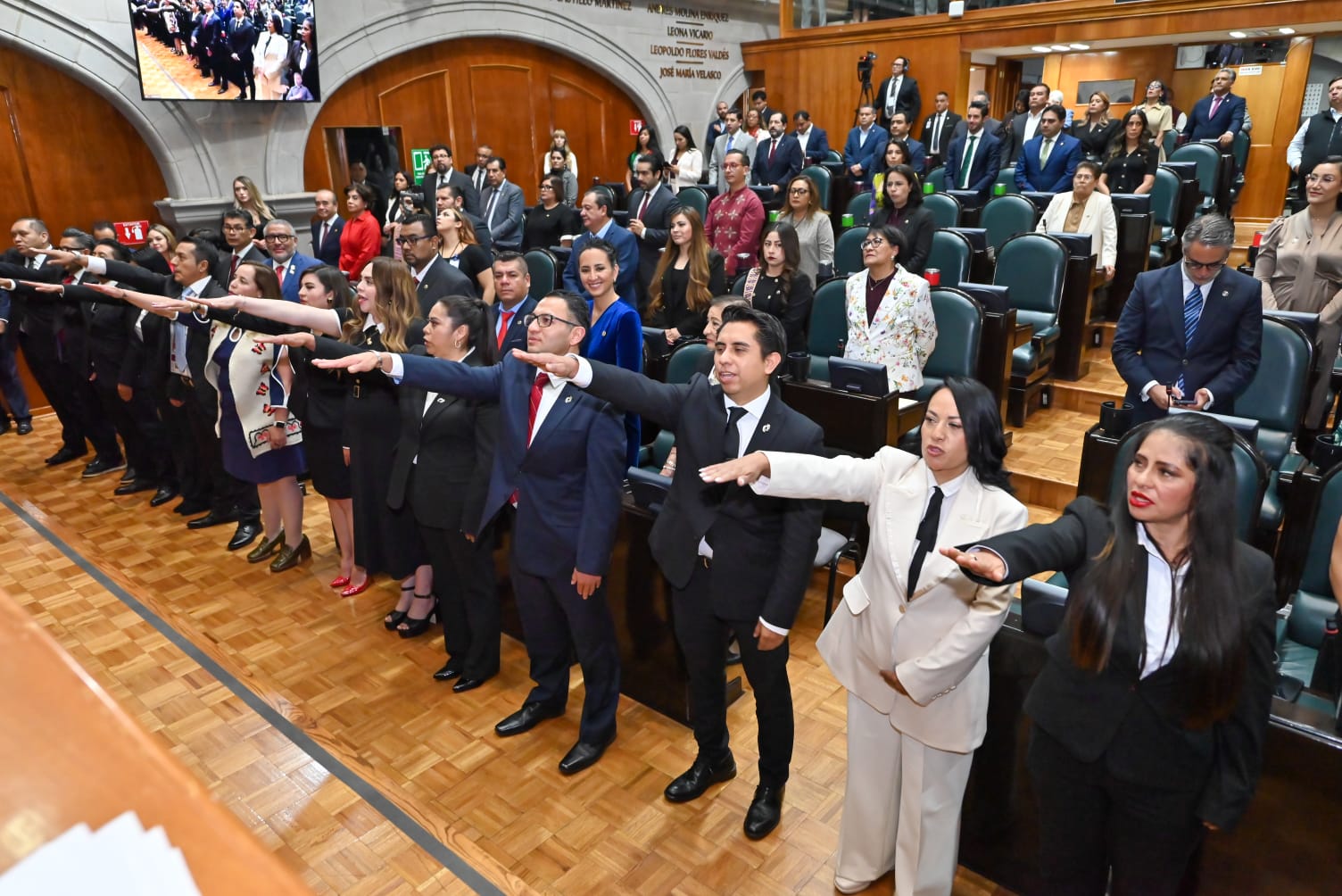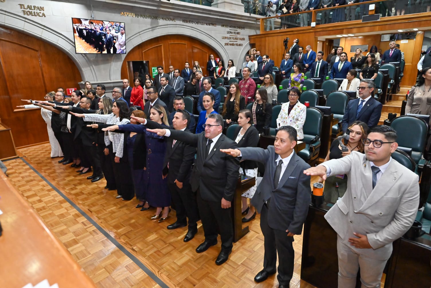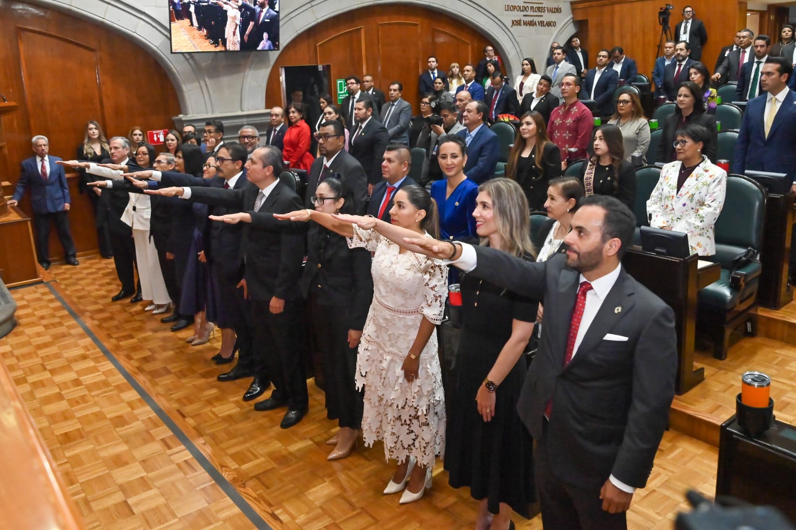- En un acto republicano, la ceremonia se realizó ante integrantes de la Junta de Coordinación Política, encabezada por el diputado Francisco Vázquez; de la Directiva, presidida por la legisladora Martha Camacho; y contó con la presencia de la gobernadora Delfina Gómez Álvarez.