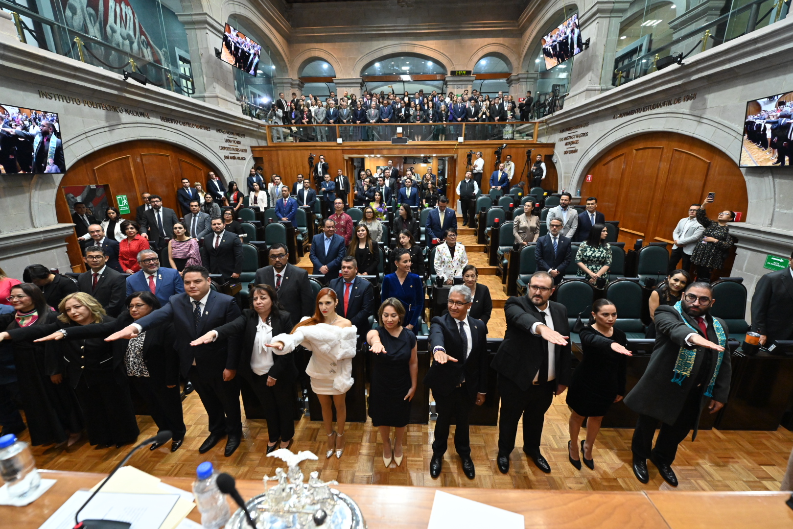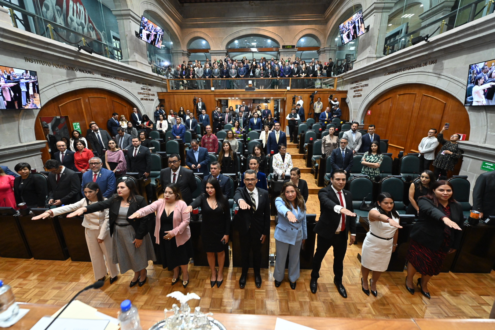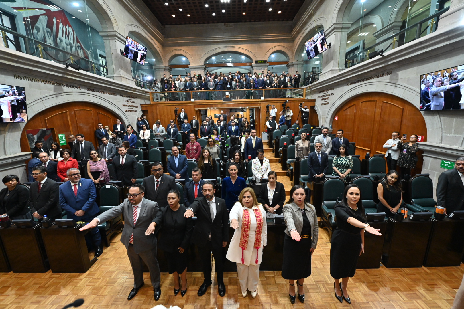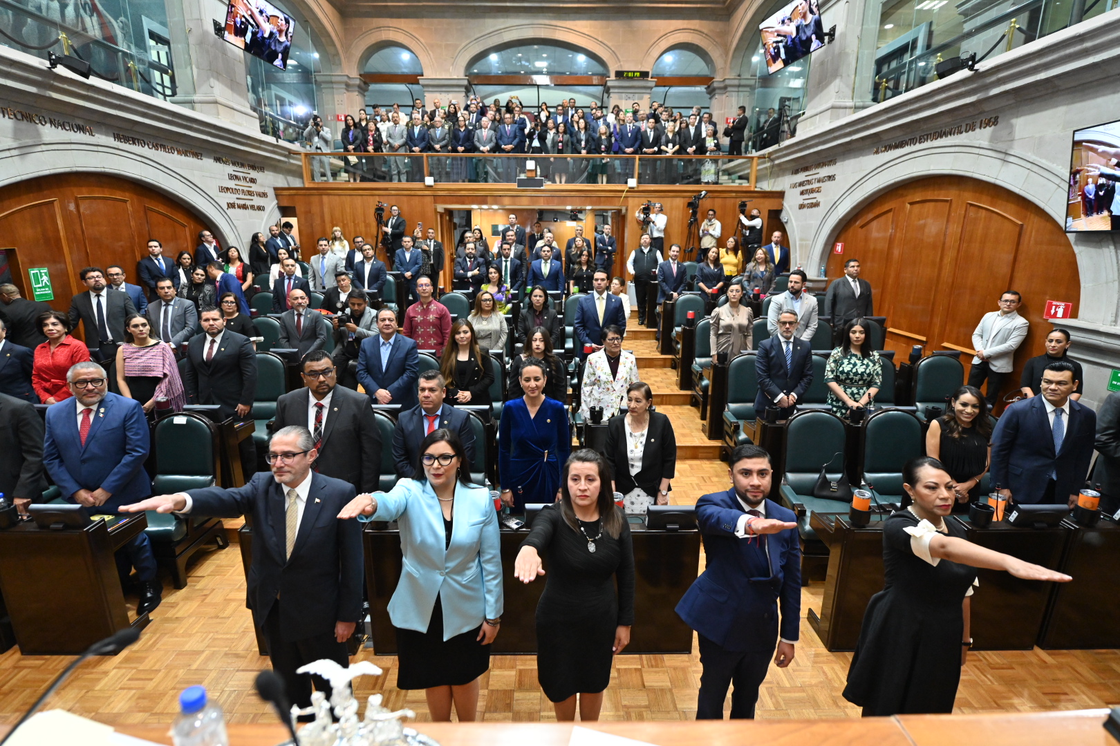 - En un acto republicano, la ceremonia se realizó ante integrantes de la Junta de Coordinación Política, encabezada por el diputado Francisco Vázquez; de la Directiva, presidida por la legisladora Martha Camacho; y contó con la presencia de la gobernadora Delfina Gómez Álvarez.