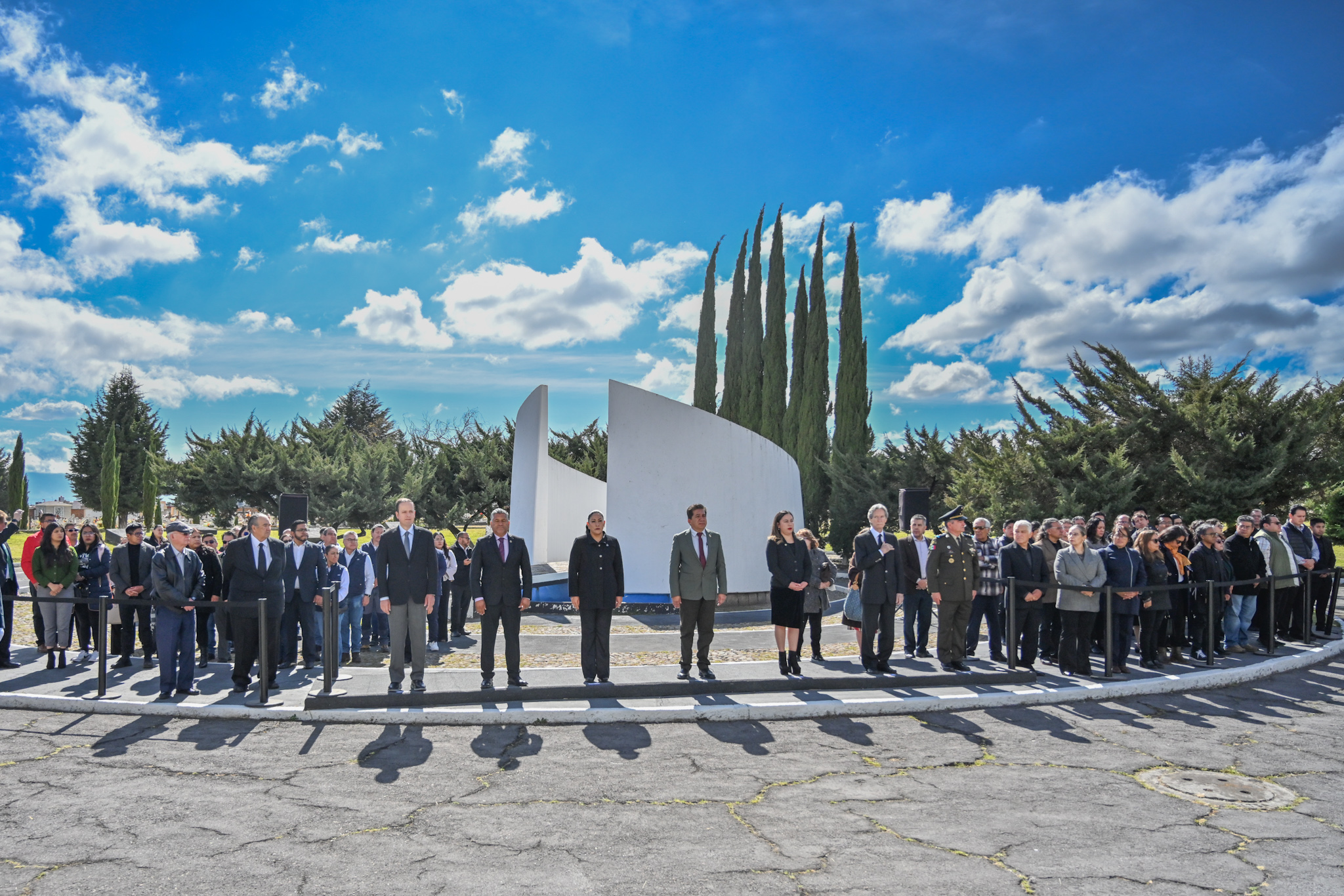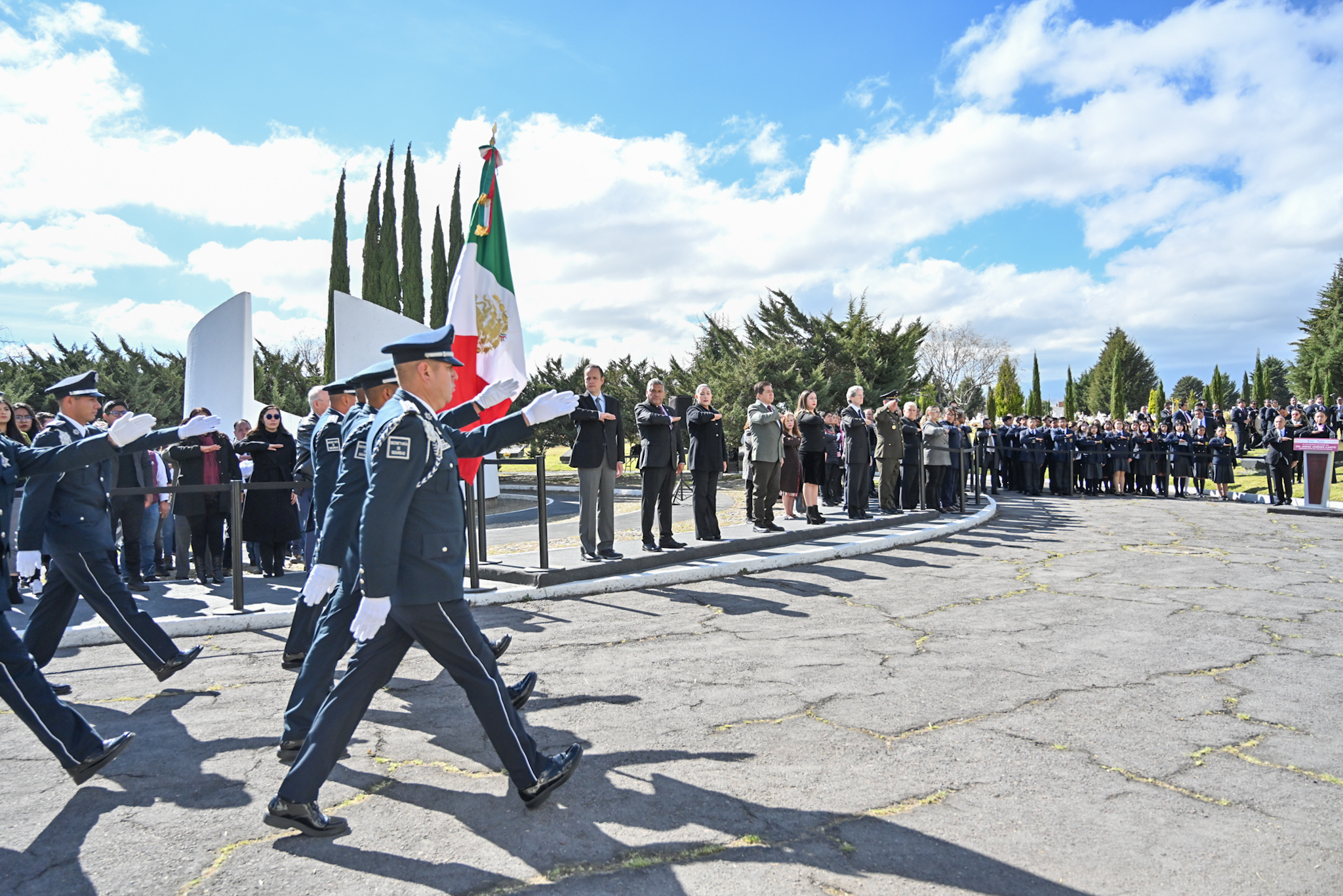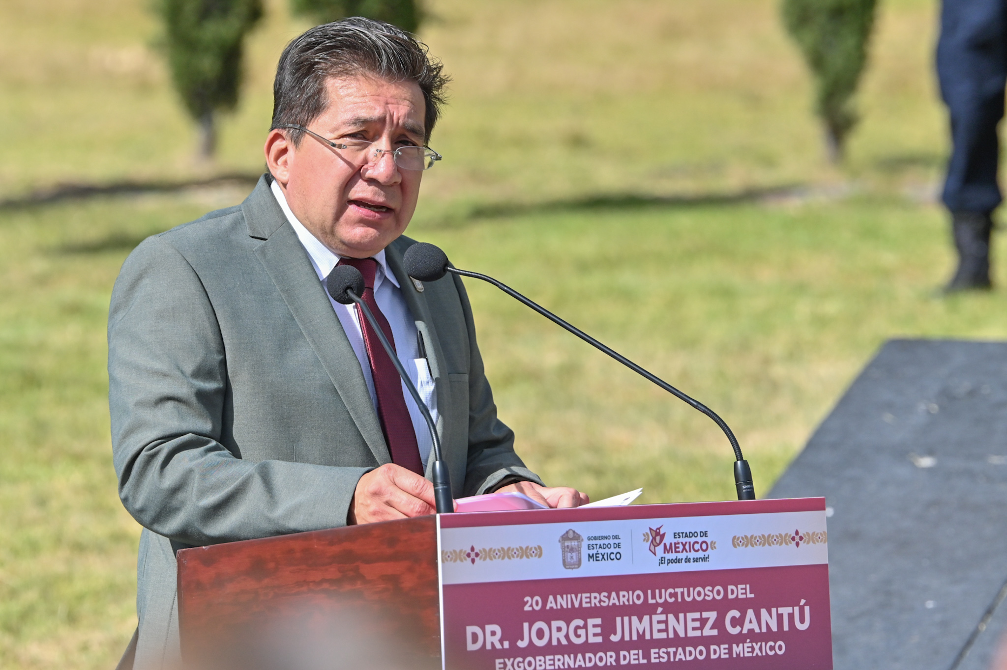 En el marco del vigésimo aniversario luctuoso del exgobernador Jorge Jiménez Cantú (1914-2005), la diputada Martha Azucena Camacho Reynoso (morena), presidenta de la Directiva del Congreso mexiquense, y el legislador Gerardo Pliego Santana (morena) participaron en la ceremonia cívica y guardia de honor en memoria del exmandatario, realizada en la Rotonda de Personas Ilustres, en el Panteón Municipal de Toluca.