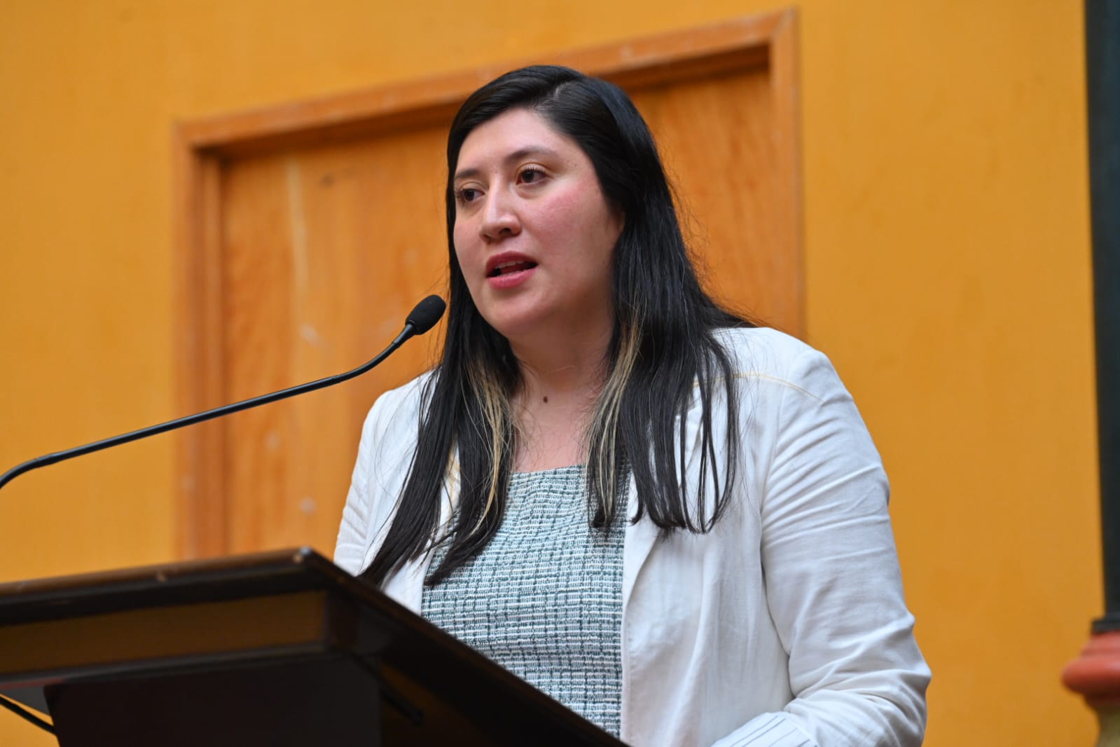 Ante le diputade Luisa Esmeralda Navarro Hernández (morena) y las parlamentarias Alejandra Figueroa Adame (PVEM) y Sara Alicia Ramírez de la O (PT), así como Juan Carlos Villarreal Martínez, Violeta Isabel Huerta López y Juan Miguel Hernández Martínez, titulares del Inesle, de la Dirección General de Comunicación Social, y de la Unidad de Información del Poder Legislativo, respectivamente, Paloma Cruz detalló que la guía debe ser utilizada como una base para profesionalizar el trabajo legislativo, no solo para personas asesoras y diputadas, sino también para la ciudadanía.