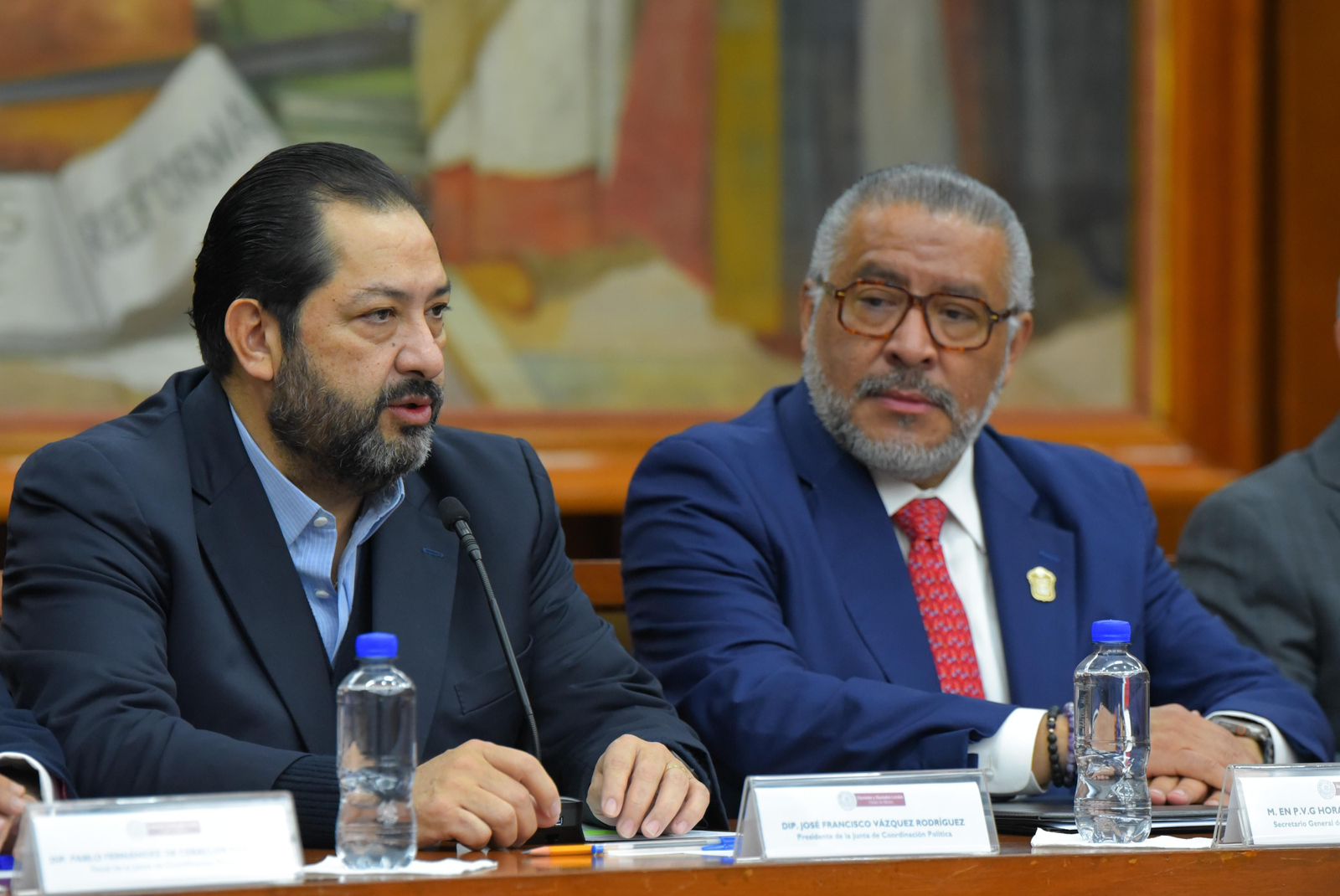 A través de los diputados José Francisco Vázquez Rodríguez y Maurilio Hernández González, presidentes de la Junta de Coordinación Política (Jucopo) y de la Directiva, respectivamente, la LXII Legislatura mexiquense recibió la propuesta de Paquete Fiscal 2025 de la gobernadora Delfina Gómez Álvarez, que considera un presupuesto de egresos de 388 mil millones 551 mil pesos y descarta la contratación de deuda pública.