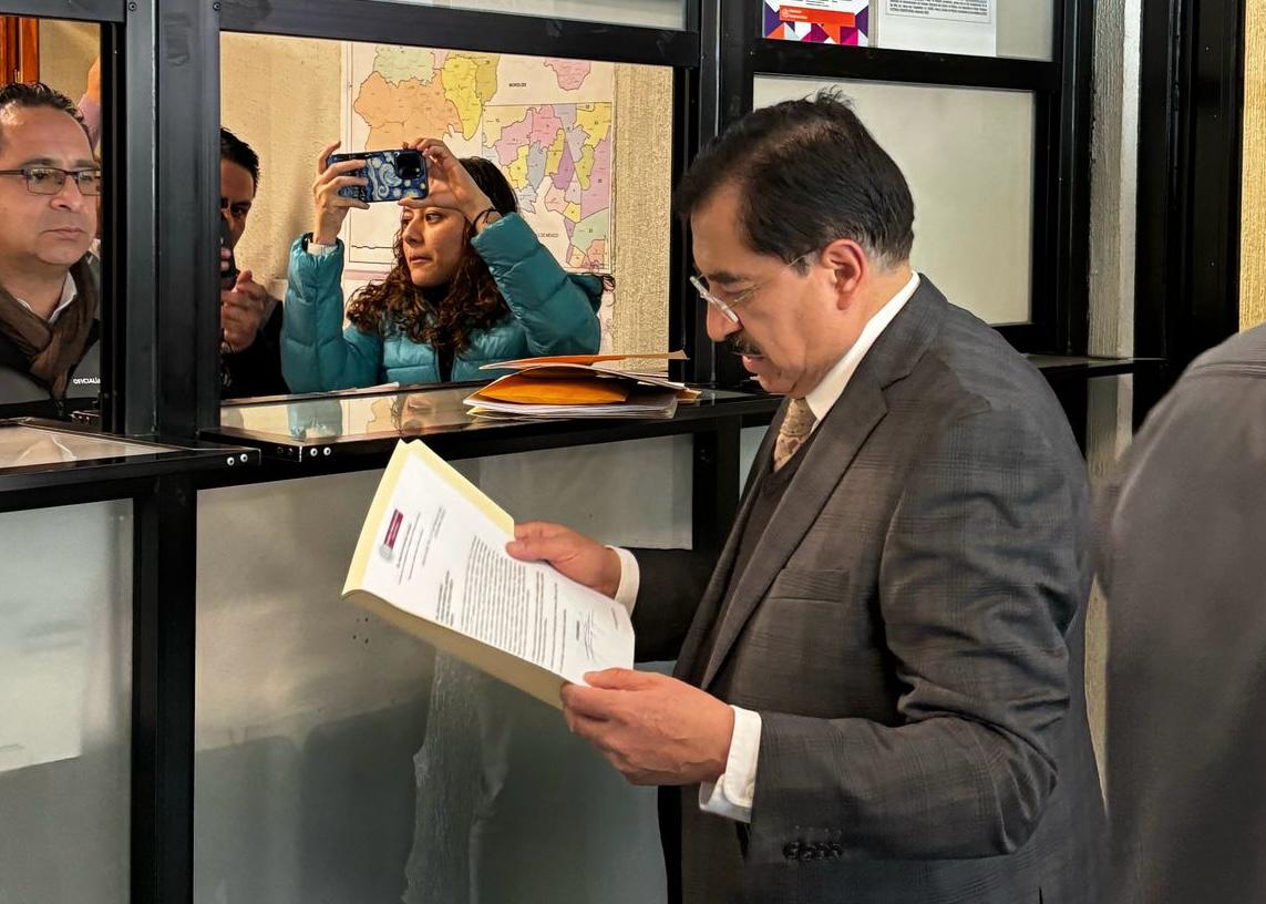 En representación de la LXII Legislatura mexiquense, Javier Domínguez Morales, secretario de Asuntos Parlamentarios del Congreso local, entregó al Instituto Electoral del Estado de México (IEEM) los listados y expedientes de las personas postuladas por cada poder del Estado para la elección de personas juzgadoras.