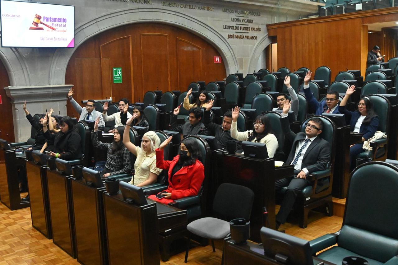 Jóvenes mexiquenses fortalecieron valores de participación política, cívica, democrática y comunitaria, además conocieron y experimentaron la organización del Congreso mexiquense y el proceso legislativo, gracias al Parlamento Estatal de la Juventud en el Estado de México 2025, convocado por el diputado Carlos Antonio Martínez Zurita Trejo (morena).