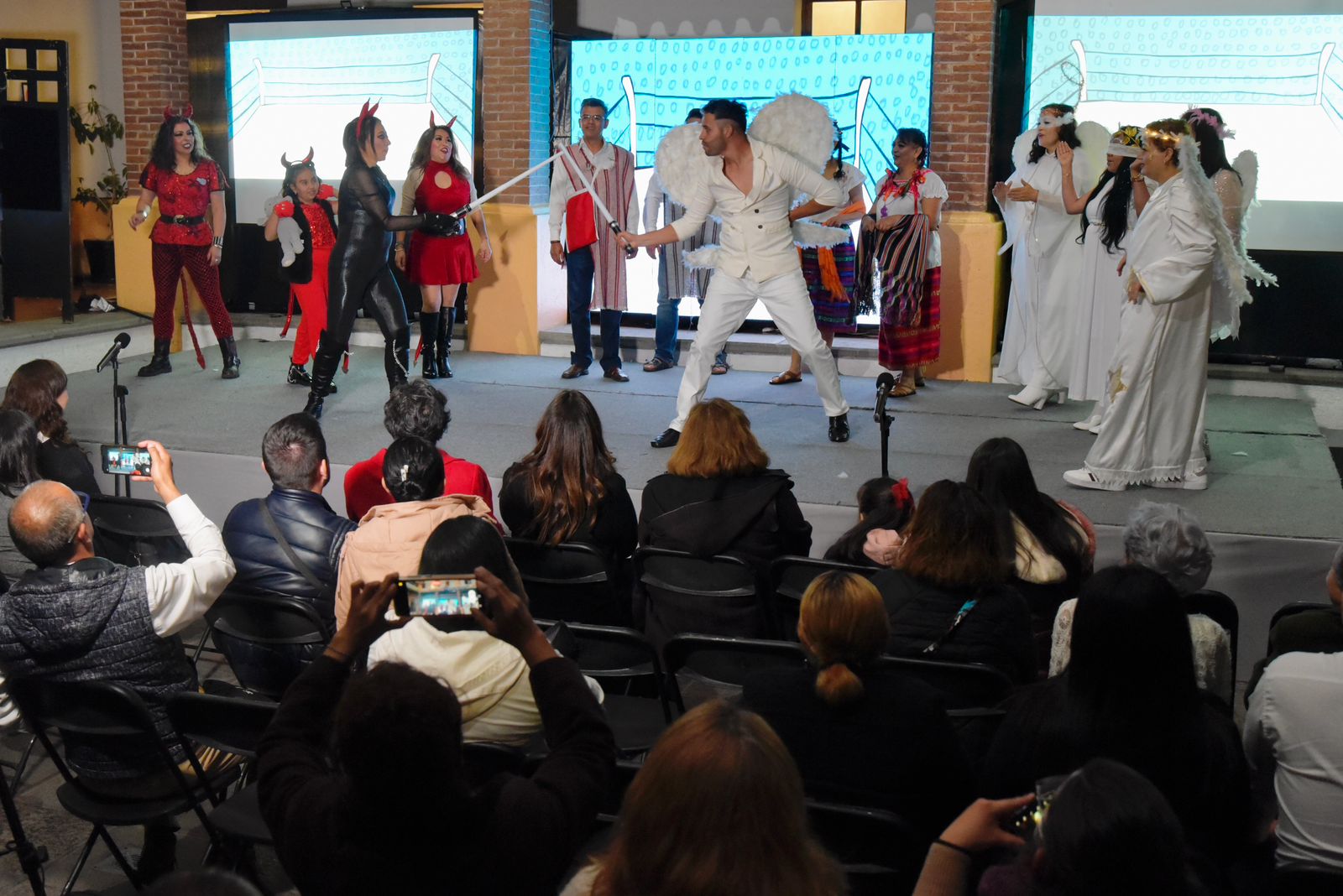 La Pastorela ‘La Apuesta’, de Hugo R. Gómez Paredes, adaptación de María Emma Aguilar Delgado y dirección de Stephania Nolasco, se ha presentado este 14 y 15 de diciembre en la Biblioteca Legislativa y tendrá dos presentaciones más, 16 y 19 de este mes, en espacios del Congreso y en un asilo de personas mayores abandonados por sus familias o rescatados de una situación de calle, el cual solicitó el apoyo de la UAS para llevarles entretenimiento en esta temporada navideña.