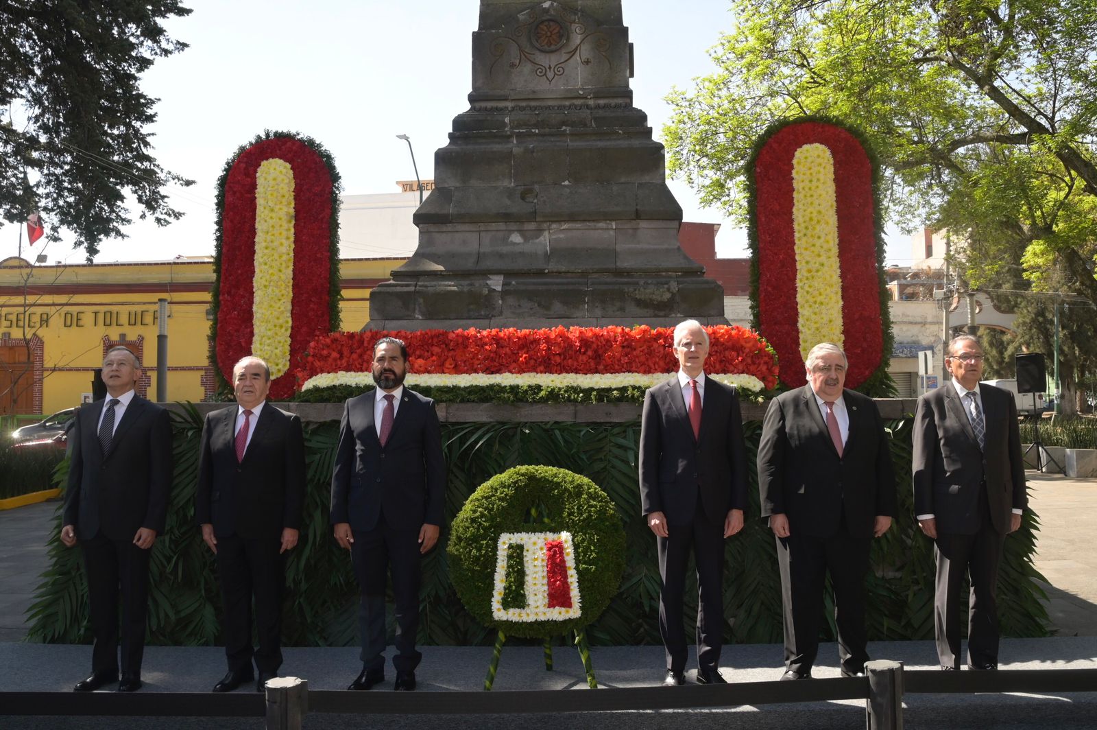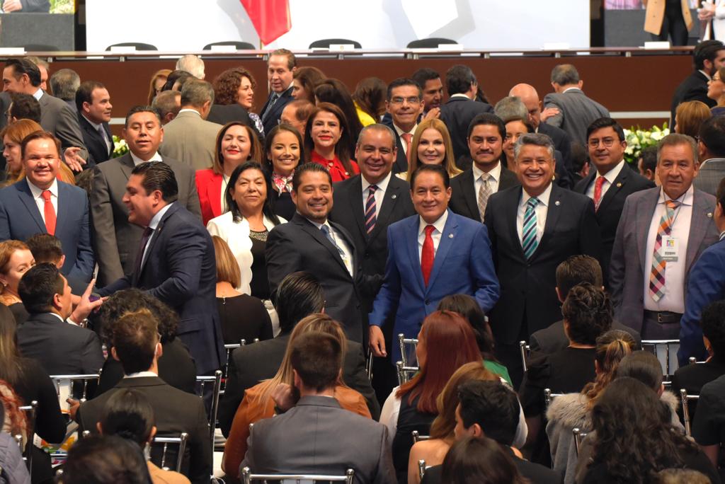 Después de participar en la guardia de honor y depósito de ofrenda floral en el Monumento a los Hombres Ilustres, en la capital mexiquense, acompañados de diputadas y diputados locales de diferentes grupos parlamentarios, participaron en la entrega de la Presea Estado de México y develaron una placa alusiva a esta conmemoración.