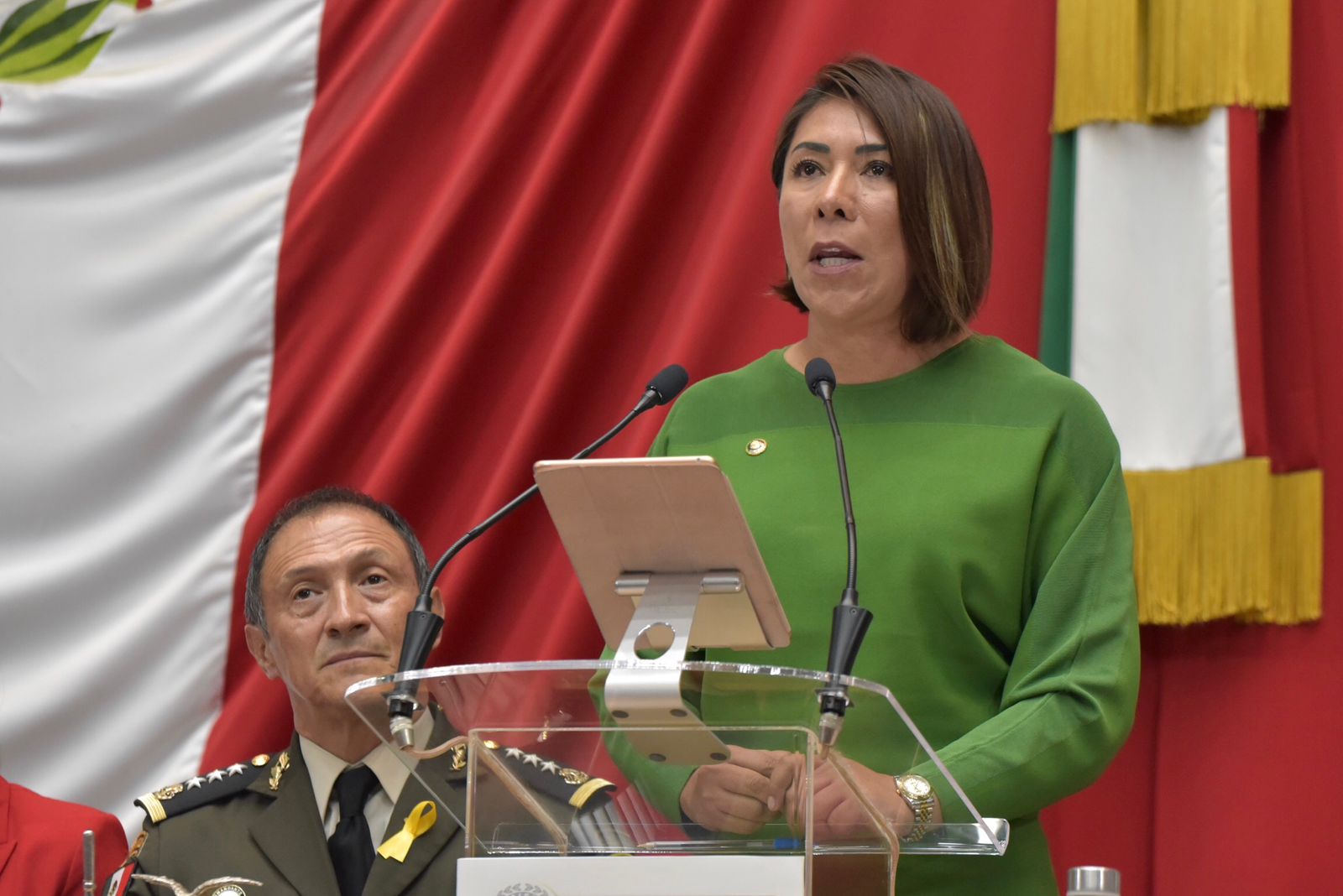 Ante diputadas y diputados locales, autoridades militares, así como Ricardo Sodi Cuéllar, presidente del Tribunal Superior de Justicia, y de José Luis Cervantes Martínez, titular de la Fiscalía General de Justicia, ambos de la entidad, la legisladora enumeró algunos de los ejemplos de la grandeza del Heroico Colegio, entre estos, la defensa del país ante la invasión de Estados Unidos de Norteamérica en 1847, así como los acompañamientos en 1913 al presidente Francisco I. Madero y en 1920 al presidente Venustiano Carranza.