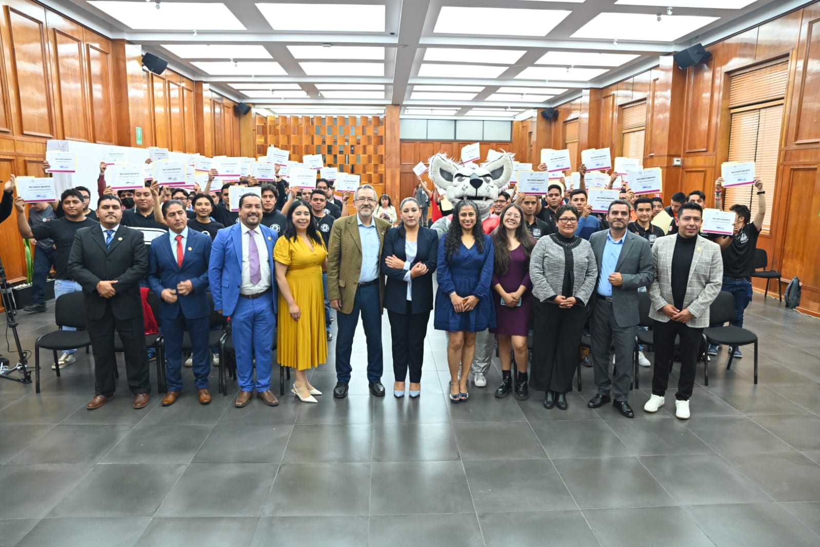 Durante la entrega de reconocimientos también estuvieron presentes la alcaldesa Alejandra Castro Nava y el alcalde Oscar Galán Flores, de San Antonio la Isla y Almoloya del Río, respectivamente, así como personal docente y directivo de la UPVT.